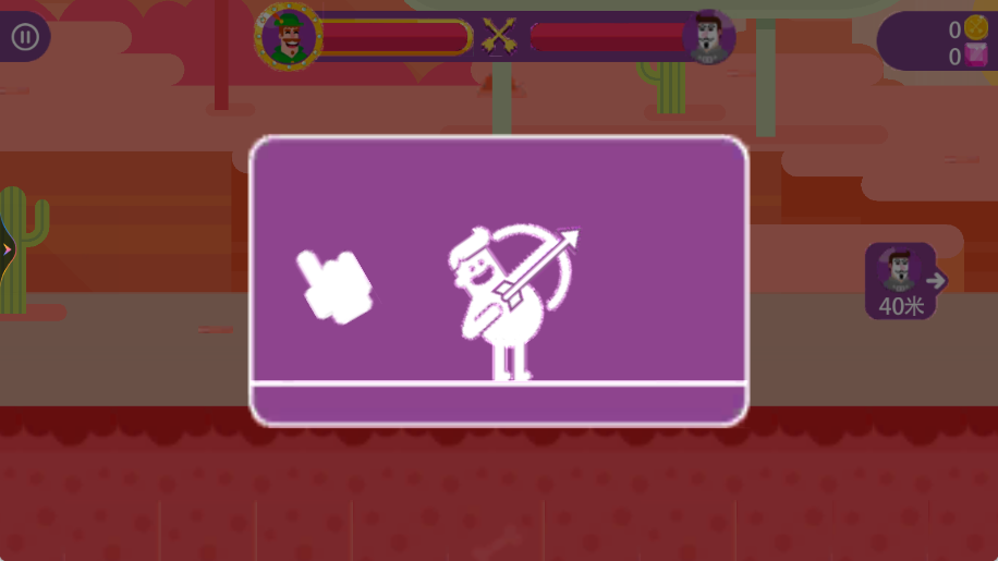 2、对局中基础的操作就是我们点击屏幕向左边拉,就可以让我们的箭向左边射出,需要注意的是根据敌人的距离控制好力度和角度。