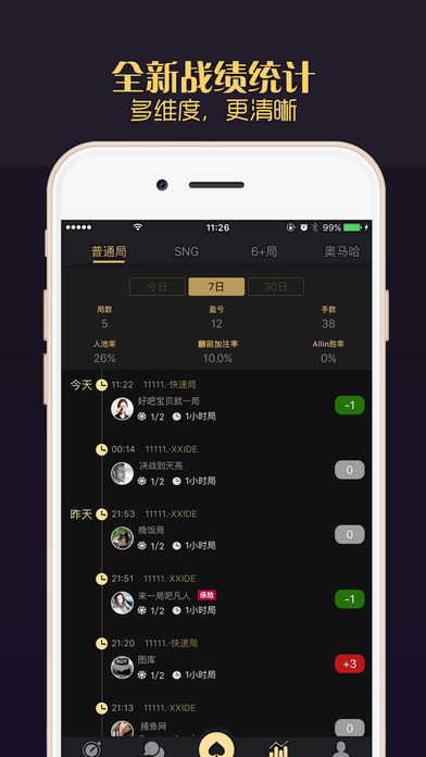 晒战绩、晒牌谱。分享你德扑圈内的精彩瞬间;